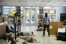 Wer nun glaubt, erraten zu können, wieviel Zeit der bedauernswerte Nick für den Bankraub hat, nachdem ihm die Bombe umgebunden wurde, sieht sich leider getäuscht. Denn der Filmtitel suggeriert hier weit mehr Tempo, als der Film tatsächlich aufbringt - und das ist bereits das größte Manko von "30 Minuten oder weniger". Obwohl der Streifen wirklich flott unterwegs ist und mit jeder Menge Plotwendungen aufwartet, will sich ein Gefühl von wirklich drängender Zeitknappheit nicht so recht einstellen, denn Nick hat mitnichten bloß 30 Minuten Zeit für seinen Banküberfall, sondern mehrere Stunden, so dass er trotz umgeschnallter Bombe noch genug Zeit hat, 30 Minuten oder wenigersich ausgiebig mit seinem besten Freund Chet (Aziz Ansari) zu beratschlagen und sich ein wenig in Freundschafts- und Beziehungsquerelen zu aalen, da er Chet gestehen muss, einst mit dessen Zwillingsschwester Kate (Dilshad Vadsaria) geschlafen zu haben und nach wie vor in diese verliebt zu sein.