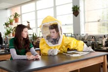 Zuallererst tritt "Beilight" den interessanten Nachweis an, dass man die "epische" Handlung der ersten beiden "Twilight"-Streifen problemlos auf schlanke 80 Minuten zusammen kürzen kann, ohne dass irgendetwas Relevantes fehlt. Unsicherer Teenager Becca (hier nun: Jenn Prosker) kommt in die Kleinstadt ihres ungehobelten Vaters Frank, findet dort eigentlich alles ganz schrecklich, wird aber bald von gleich zwei Fabelwesen in Menschengestalt begehrt, dem einfühlsamen Vampir Edward (Matt Lanter) und dem rauen Naturburschen und Werwolf Jacob (Chris Riggi). Das Prinzip dieser Parodie besteht nun darin, diverse Szenen des Originals recht genau nachzustellen, um sie dann durch absurde Gags anzureichern oder gleich ganz aufzulösen.