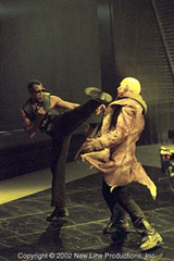 Beweisstück drei: Die Effekte. Man mag mich ja der Nostalgie bezichtigen, aber prothetisches Make-up und mechanische Effekte waren und sind - wenn richtig gemacht - noch immer das Beste und Glaubwürdigste. Nichts gegen die zugegebenermaßen erstaunlichen digitalen Fortschritte, aber Trickvehikel wie die "Die Mumie"-Filme haben alle Mühe, nicht in ihrem eigenen CGI-Hintern zu verschwinden, während Actionmüll a la "Romeo must die" von den lächerlich eingeflochtenen Digitaleffekten nicht profitiert, sondern nur noch mehr zum Ziel von Hohn und Spott wird. Das gleiche Problem zeigt sich in "Blade 2". Die digitalen Effekte sind jederzeit als solche zu erkennen und zum Beispiel in diversen Kampfszenen wenig überzeugend. Die Effekte, die für die ‚reapers' benutzt wurden, sehen in ihrer offensichtlichen digitalen Herkunft und Falschheit mit Verlaub eher lächerlich denn furchteinflößend aus. Während Offensichtliches aus dem Computer aber in reinem Popcornkino wie der "Mumie" oder dem Original-"Blade" funktioniert, weil selbstironisch angehaucht, ist es in diesem viel zu ernsten, übermäßig grimmigen Film fehl am Platze.