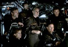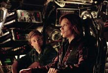 Allerdings schwant dem auch nur einigermaßen versierten Zuschauer genau bei dieser Zusammenstellung der einzelnen Crewmitglieder wohl auch schon, was denn schlimmstenfalls auf ihn zukommen könnte: Ein weiterer Handlungsverlauf nach Schema F, bei dem alle bekannten Klischees und anscheinend für unverzichtbar gehaltenen Handlungselemente auch tatsächlich wieder einmal eingebaut werden. Wen haben wir also hier: Einen jungen, gutaussehenden und sympathischen Helden und eine Dame mit genau den gleichen Attributen. Dazu zwei weitere Wissenschaftler: Einen liebenswerten und einen arroganten, aber beide exzentrisch. Dazu einen blassen Piloten und einen raubeinigen Mechaniker. Hm, wer wird wohl als erstes draufgehen und wer überleben? Wird der Mistkerl an Bord vielleicht im letzten Moment doch noch geläutert und weiß einer an Bord vielleicht mehr als die Anderen (Stichwort: Verschwörung). Wird das blasse Computerkid im Kontrollraum schließlich den Tag retten? Vielleicht, aber der Plot des Films ist dann leider schon absolut nicht mehr zu retten, weil hundertprozentig vorhersehbar, gänzlich überraschungsfrei und daher ziemlich ärgerlich. Und das liegt nicht an den Darstellern, denn für einen Genrefilm hat man es hier mit einem bemerkenswert talentierten Ensemble zu tun: Neben Aaron Eckhart und Hillary Swank sind nämlich auch Stanley Tucci, Delroy Lindo und Hollywoods Lieblingsfranzose Tcheky Karyo mit an Bord. Keine großen Namen, aber durchaus bewährte Kräfte und eben auch "richtige" Schauspieler. Die holen dann auch aus ihren eindimensionalen Charakteren heraus was möglich ist, doch ist das eben leider nicht allzu viel.