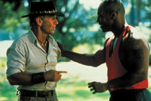 Für Filme wie diese gilt als eiserne Regel in etwa das, was auch für Band-Reunions gilt: Das Original ist ein Spaß, aber der kommerzielle Nachschlag stinkt. Gegen den ersten Teil wirkte Nummer Zwei bereits wie eine traurige Clownsnummer und mit Nummer Drei sind wir beim Kleingeld haschenden Straßenkünstler angekommen. Was "Crocodile Dundee in Los Angeles" mehr schlecht als recht aber immerhin gerade noch so an einem Debakel vorbeirauschen lässt ist pure Nostalgie. Bei aller Langeweile und Vorhersehbarkeit freut man sich irgendwie doch, daß es Figuren wie Crocodile Dundee noch mal mit einem Anlauf auf die große Leinwand versuchen. Auch wenn man eigentlich nur an vergangene bessere Tage erinnert wird, so hat die Wiederbelebung von "Crocodile Dundee" fast etwas rührendes. Aber auch nur fast. Denn der Film versucht ähnliches wie beim bereits erwähnten Tyson-Auftritt. Man will uns "Crocodile Dundee in Los Angeles" als gefährlichen Alligator verkaufen, dabei ist er nicht mehr als eine Eidechse. Eine ganz kleine.