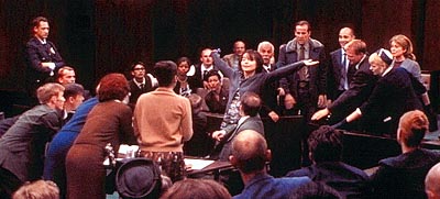 Natürlich wäre dies alles nur die Hälfte wert ohne eine Hauptdarstellerin, die Selmas Naivität und Güte ebenso überzeugend darstellen kann wie ihr Potential für leidenschaftliche Eruptionen und ihre sture Kompromißlosigkeit. Mit Björk, die ja bereits beim Videoclip zu ihrem Song „It‘s Oh So Quiet“ ein wenig Musicalerfahrung sammeln konnte, dürfte Lars von Trier seine Idealbesetzung gefunden haben. Wie schon Emily Watson in „Breaking the Waves“ geht die isländische Sängerin, die ursprünglich nur die Musik zum Film beisteuern wollte und schließlich ebenfalls in Cannes ausgezeichnet wurde, voll in ihrer Rolle auf. Man reagiert als Zuschauer regelrecht bestürzt, wenn man mitansehen muß, wie Selma versucht, sich ihre rapide schwindende Sehkraft nicht anmerken zu lassen, und spätestens nach der nur schwer erträglichen Tötungsszene in der Mitte des Films wird man die während der Dreharbeiten durch die Presse gegangenen Nervenzusammenbrüche der Hauptdarstellerin am Set nur noch schwer als Promo-Gag abtun können, vom unglaublich intensiven Schluß ganz zu schweigen. „Dancer in the Dark“ bietet auf verschiedensten Ebenen mit Sicherheit Stoff für kontroverse Diskussionen, seiner emotionalen Wucht dürften sich jedoch nur die wenigsten entziehen können.