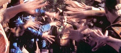 Auf den ersten Blick fällt es leicht, „Dancer in the Dark“ einfach als „Breaking the Waves“ mit Musical-Einlagen zu beschreiben, denn die Parallelen zwischen beiden Filmen sind zahlreich und enden keineswegs bei der überlangen Laufzeit und dem Gewinn einer Auszeichnung in Cannes (1996 gab's den großen Preis der Jury, in diesem Jahr sogar die Goldene Palme). Besonders die Hauptfiguren sind sehr ähnlich angelegt: Sowohl Bess (gespielt von der phänomenalen Emily Watson) als auch Selma (gespielt von der einzigartigen Björk) sind kränkelnde aber herzensgute Frauen, die trotz ihrer eher unscheinbaren Erscheinung und ihrer bescheidenen Lebensumstände wie Engel wirken, die durch die Hölle einer ihnen feindlich gesonnenen Umgebung gehen müssen, um einer geliebten Person helfen zu können. Daß beide Filme trotz einer derartigen Grundidee nicht einfach nur kitschig und pathetisch daherkommen, liegt nun wiederum an der filmischen Umsetzung, die man am ehesten als ‚Dogma-Light‘ bezeichnen könnte. Soll heißen: Auch bei „Dancer in the Dark“ dominiert eine unruhige Handkamera, die auch gerne mal ganz nahe an die Figuren rangeht, um jede kleinste Regung in den Gesichtern festzuhalten. Möglicherweise ist gerade dieser Amateurvideo-Look als wohl extremstes Gegenstück zur klassischen Hollywood-Ästhetik die derzeit effektivste Möglichkeit, große Gefühle zu vermitteln, ohne dabei hemmungslos manipulativ, berechnend und unaufrichtig zu wirken.