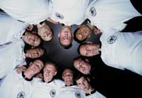 Ebenso authentisch sind die deutschen Auswahlkicker: Der wilde Dialekt-Mix im Trainingslager vermittelt schön den Straßenfußballer-Charakter der damaligen Elf, Jungs von nebenan und noch keine Vermarktungsobjekte mit PR-Berater. Besonderer Bonus: Wortmann besetzte die Nationalspieler nicht mit fußballernden Schauspielern, sondern mit schauspielenden Fußballern - alle Darsteller von Fritz Walter, Max Morlock, Toni Turek und Co. haben in der Realität schon in höheren Klassen gekickt. Das beabsichtigte Resultat tritt ein: Endlich mal ein Sportfilm, der auch nach echtem Sport aussieht, und nicht wie der Versuch eines Schauspielers, beim laienhaften Kicken möglichst professionell zu wirken. Was "Das Wunder von Bern" aber auf besonders eigenwillige Art interessant macht, ist die Tatsache, dass dies wohl der amerikanischste deutsche Film aller Zeiten ist. Soll heißen: Wortmann versucht sich hier an einem Genre, in dem es nicht um die Darstellung des Milieus geht (wie z.B. in "Fußball ist unser Leben" oder dem hervorragenden "Nordkurve"), sondern um die Überhöhung des sportlichen Triumphs zu einem Mythos. Und für so etwas gibt es hierzulande faktisch keine Vorbilder - dafür aber mehr als genug amerikanische Streifen (vornehmlich über Baseball) an denen man sich orientieren kann. Und so kriegt man hier wirklich alles serviert, was zum amerikanischen Sport-Formelkino dazugehört: breiter, emotionaler Sound vom Symphonieorchester; vielsagende Blicke in entscheidenden Momenten, natürlich in Zeitlupe; der Held, der erst sich selbst besiegen muss, bevor er Großes vollbringen kann; und am Ende fährt man sogar durchs ländliche Idyll in den Sonnenuntergang. Kurz: Wortmann lädt mehr Pathos in "Das Wunder von Bern", als man in einem deutschen Film überhaupt für möglich gehalten hätte.