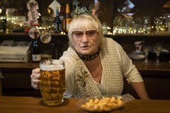 Ein Niveau, dass der Film in der Folge allerdings nicht halten kann, denn während die Vorlage (zumindest im ersten Band) lediglich aus einer Aneinanderreihung von einzelnen kleinen Ideen und Erlebnissen besteht, braucht der Film letztlich halt doch so etwas wie eine durchgehende Geschichte. Und diejenige, die man sich dafür ausgesucht hat, passt zwar grundsätzlich zum auch in den Büchern gepflegten Feindbild Kapitalismus, gerät insgesamt aber doch recht dünn, und auch ein gestandener Schauspieler wie Henry Hübchen (Regisseur Dani Levy greift dabei auf den bewährten Hauptdarsteller aus seinem Erfolgsfilm „Alles auf Zucker“ zurück) kann aus der sehr eindimensionalen Figur nicht allzu viel herausholen. Insgesamt hat man aber ein überzeugendes Ensemble versammelt, vor allem die schrägen Nebencharaktere wie Kneipenwirtin Herta (merke: „keine ist herta“) oder die türkischen Ladenbesitzer Otto und Friedrich-Wilhelm werden gut getroffen.