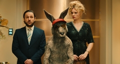 Blicken wir zuerst auf die wohl heikelste Komponente, und das ist die animierte Hauptfigur. Nimmt man die Existenz des gut zwei Meter großen sprechenden Beuteltiers bei einer Audio-Erzählung vielleicht noch recht leicht hin, so fällt das beim konkreten (und dauerhaften) Anblick schon grundsätzlich etwas schwerer, und daher darf die visuelle Umsetzung nicht allzu merkwürdig und verstörend ausfallen, will man nicht im „Cats“-Desaster enden. Aber zumindest diese Sorge erweist sich als unbegründet, denn das Känguru sieht nicht nur überzeugend aus, sondern fügt sich auch sehr geschmeidig ins Umfeld ein, so dass man dessen Existenz als Zuschauer bald genauso selbstverständlich akzeptiert wie das auch die Protagonisten im Film tun. Dabei hilft natürlich, dass es mit der bekannten Stimme von Marc-Uwe Kling spricht, die einen nicht unerheblichen Anteil am Erfolg vor allem der Hörbücher hatte. Die Dialoge, die sich die beiden stets streitenden WG-Bewohner in rasantem Tempo an den Kopf werfen, sorgen vor allem zu Beginn für viele Lacher, so dass man sich als Betrachter schnell rein findet und auch gleich ordentlich Spaß hat.
