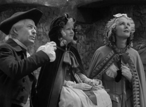 In den 1930ern produzierte Hollywood eine ganze Serie von Dickens-Verfilmungen – so zum Beispiel “David Copperfield“ im Jahr zuvor. Solche aufwendigen und sehr klassisch angehauchten Stoffe waren natürlich ein Fall für das Studio Metro-Goldwyn-Mayer (über die Vorlieben der großen Studios in dieser Zeit hatten wir ja hier schon einmal gesprochen). Für “Flucht aus Paris“ engagierte man dann auch gleich ein paar alte Bekannte aus “David Copperfield“ – inklusive ähnlicher Rollenprofile. So darf Elizabeth Allan ihre Rolle als Frau mit großem Herz nun deutlich ausbauen, Edna May Oliver weiterhin grantelnd daneben stehen und Basil Rathbone natürlich wieder genüsslich den arroganten Bösewicht geben.
