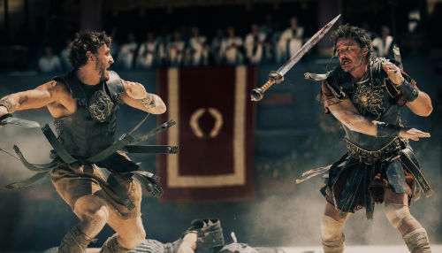 Mehr als 15 Jahre nach dem ehrenhaften Tod von Maximus Decimus Meridius (Russell Crowe) im Kolosseum von Rom ist es um das römische Reich nicht gut bestellt. Das junge Kaiserpaar Caracalla (Fred Hechinger) und Geta (Joseph Quinn) sieht das Imperium vor allem als Selbstbedienungsladen. Ganz besonders liebt es, den römischen Tribun Acacius (Pedro Pascal, "The Equalizer 2", "Kingsman: The Golden Circle") gegen dessen Willen auf blutige Eroberungsfeldzüge zu schicken. Von einem solchen kehrt dieser mit dem Gefangenen Hanno (Paul Mescal, "Frau im Dunkeln") zurück, der unter den Fittichen des intriganten Waffen- und Menschenhändlers Macrinus (Denzel Washington, "Fences", "Training Day") schon bald eine blutige Karriere als Gladiator in Rom hinlegt. Dabei ist es vor allem der Hass auf Acacius, den Hanno für den Tod seiner Frau verantwortlich macht, der Hanno antreibt. Die Umsetzung dieses Racheplans wird jedoch dadurch erschwert, dass Lucilla (Connie Nielsen, "One Hour Photo", "Wonder Woman"), die ehemalige Geliebte von Maximus und jetzige Ehefrau von Acacius, eine ganz besondere Beziehung zu dem aufstrebenden Gladiator pflegt.