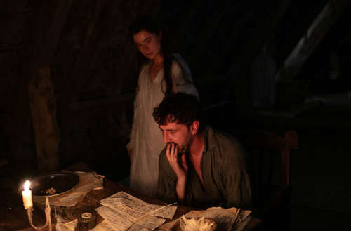 So ein gerade optisch "raueres“ Kino ist natürlich immer gerne gesehen, sollte aber eben dann vor allem inhaltlich punkten. Genau das kriegt "Hamnet" in der ersten Hälfte eigentlich nur bedingt hin. Das Kennenlernen von Agnes und William sowie deren erste gemeinsame Schritte ins Familienleben kommen ein bisschen zu banal daher. So schön das ist, dass man sich hier auch für kleine Alltagsmomente Zeit nimmt, so richtig interessant sind diese zum Großteil nicht geraten. So lebt der Film schon in dieser Phase hauptsächlich vom Charisma Jessie Buckleys, deren Rolle zu Beginn erst etwas klischeehaft wirkt, dank ihres überzeugenden Spiels und kleiner Charaktermomente aber immer interessanter ausfällt. Das kann man leider von Paul Mescals Shakespeare weniger behaupten. Dieser ist zu Beginn noch in einer beruflichen Selbstfindungsphase, die aber eher etwas am Rande behandelt wird und der Mescal schauspielerisch jetzt auch nichts wirklich Faszinierendes hinzufügen kann.
