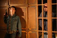 Die in der Werbung für den Film groß angekündigten "zahlreichen Wendungen" reduzieren sich dabei genau genommen auf eine einzige in der Mitte des Films und selbst die dürfte vielen Zuschauern durch die entsprechende Berichterstattung schon vorher bekannt sein. Dass hinter dem biederen Familienvater Walter Smith mehr steckt als zunächst angenommen, wird durch deutliche Hinweise schon recht früh offensichtlich und geht daher auch nicht als großer Clou durch. Obwohl Kevin Pollacks "Mr. Smith" zumindest noch eine einigermaßen vielschichtige Figur ist, was man von den drei jugendlichen Möchtegerngangstern nun wahrlich nicht behaupten kann. Da haben wir den ungestümen Anführer samt besonnenem und deutlich vernünftigerem Bruder sowie als Drittes noch den obercoolen Psychopathen. Mit anderen Worten also einen ganz tiefen Griff in die Klischeekiste samt klassischer Rollenverteilung, wie sie beispielsweise zuletzt auch in dem ebenfalls nur mittelprächtig gelungenen "Panic Room" zu sehen war. Überhaupt weist "Hostage" in Sachen Konzentration auf einen sehr übersichtlichen Raum sowie Ablauf des Geschehens in "Beinahe-Echtzeit" einige Parallelen zum Film von David Fincher auf.