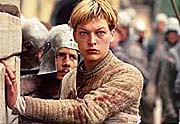 Und dann ist da Milla Jovovich, die Luc Besson nicht umsonst nach dem "Fünften Element" erneut als "auserwählte", göttliche Person auf die Leinwand bringt. Aber leider, und hier hören die positiven Seiten des Films auch schon auf, kann Jovovich ihre unglaubliche äußere Erscheinung nicht mit passender Schauspielkunst verbinden. Vieles mag durch die unangenehme Synchronstimme verhunzt sein, aber ihre affektierte Art zerrt schwer an den Nerven. Sicherlich, diese Version der Jungfrau von Orleans ist ein wenig anders konstruiert, nämlich weniger als selbstbewußtes Mannsweib denn als besessenes, hin- und hergerissenes Mädchen. Trotzdem will man nicht unbedingt Zeuge sein, wie Milla Jovovich volle zwei Stunden speichelfädenziehend heult, kreischt und über Dolby Surround in die Menge hyperventiliert. Nein, ich übertreibe nicht.