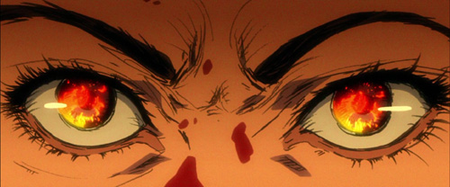Und hier findet sich mit der siebenminütigen Ausgestaltung von O-Rens Rache an Pretty Riki, einer der Handlanger im Mord an ihren Eltern, auch die größte (und einzige) Neuerung der Whole Bloody Affair, die nicht im Japan-Cut von Vol. 1 enthalten war. Die absolut gelungene Sequenz, die damals aus Zeit- und Kostengründen vom Animationsstudio Production I.G. nicht rechtzeitig umgesetzt werden konnte, erweitert die Genre-Palette um ein derbes Horror-Feeling, das ansonsten nur kurz im Grab von Paula Schulz angedeutet wird und natürlich zu den allerwichtigsten Exploitation-Genres gehört. Es beendet außerdem die jahrzehntelange Fan-Theorie, dass Pretty Riki aufgrund seines Rings Bill sein könnte, und rundet den ansonsten ins Leere laufenden, sorgfältigen Aufbau dieser Figur endlich befriedigend ab. Das Ganze fügt sich auch absolut nahtlos als schon immer so geplant ein, mit einer Überblendung von dem Feuer, in dem O-Rens Kindheit verbrennt, hin zu eben besagtem Ring.