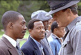 Das ist „Lebenslänglich“ sicher nicht. Aber auch kein totaler Reinfall, sondern irgendwo dazwischen. Die Handlung ist schnell wiedergegeben: Der Kleinganove Ray (Eddie Murphy) und der eigentlich gesetzestreue, aber abgebrannte Buchhalter Claude (Martin Lawrence) lernen sich unter reichlich konstruierten Umständen kennen, müssen mehr oder weniger gezwungenermaßen einen Schmuggelauftrag gemeinsam abwickeln, geraten dabei ins Visier eines korrupten und rassistischen Kleinstadtsheriffs und werden unschuldig wegen Mordes zu lebenslanger Haft verurteilt. Claude wird Ray ewig die Schuld dafür geben und sowieso können sich die beiden ja grundsätzlich nicht ausstehen. Können sie natürlich doch, und die jahrelangen Sticheleien und Hahnenkämpfe zwischen den beiden verdecken nur die Tatsache, daß sie ohne den jeweils anderen gar nicht mehr auskommen könnten.