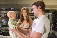 Was also den Punkt "einigermaßen nachvollziehbare Glaubwürdigkeit" betrifft, liegt dieser Komödienversuch noch weit hinter dem Film zurück, dessen Grundidee er schamlos kopiert. Denn was Robin Williams als Priester hier macht, ist nichts Anderes als das, was ein gewisser Jack Nicholson vor gar nicht allzu langer Zeit in der "Wutprobe" getan hat: Er piesackt ein junges Pärchen solange mit kleinen Gemeinheiten, bis es zur großen Krise und vorläufigen Trennung kommt, aus der man aber schließlich gestärkt hervorgeht. Denn selbstredend hat der weise Ratgeber das alles nur gut gemeint und schubst die Liebenden auf den rechten Pfad. Im erfolgreichen Nicholson/Sandler-Vehikel ging man dabei allerdings nicht nur eine ganze Ecke subtiler vor, sondern auch deutlich witziger und einfallsreicher. Hier stellt sich dagegen kein "I feel pretty"-Feeling ein, sondern es werden einem stattdessen ein paar derbere Späße kredenzt, wie z.B. zwei abgrundtief hässliche, auf Knopfdruck vor sich hinstrullernde Plastikbabys - auch dies eine der Testaufgaben des Reverend from Hell. Schlimmer als der ist aber in jedem Fall noch sein halbwüchsiger Helfer, und es sei den Autoren hiermit ein für allemal ins Lehrbuch geschrieben: Dicke, klugscheißende Kinder sind allerhöchstens für einen einmaligen Gag gut und selbst damit gewinnt man für gewöhnlich keine Preise. In Dauerpräsenz aber sind sie nicht nur nicht komisch, sondern vollkommen unerträglich.