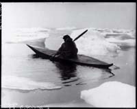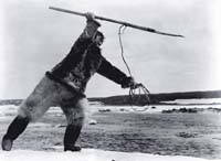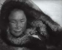 Mit dem Film selbst hatte das natürlich eher wenig gemeinsam. Die wunderschön urige Anfangssequenz zeigt das von Eisschollen bedeckte Meer, bis wir schließlich Nanuks Familie vorgestellt bekommen. In einer unfreiwillig komischen Szene sehen wir, wie viele Menschen (und Tiere) in so ein Kajak reinpassen... In kleinen Vignetten folgen Bilder des Alltags: Nanuk präpariert sein Boot, baut ein Iglu, geht auf die Jagd. Mit seinen Fellen begibt er sich zum Trading Post, um zu handeln, denn so unberührt diese Kultur auch zu sein scheint, vom "weißen Mann" war sie auch Anfang des letzten Jahrhunderts nicht mehr verschont.