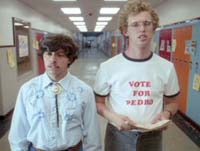 Napoleon Dynamite (Jon Heder) sieht aus wie der junge Atze Schröder. Wuschiger Lockenkopf , eine überdimensionale Brille und ein immer leicht debil geöffneter Mund. Er ist, das wird von der ersten Einstellung an klar, ein Außenseiter. Auf der Highschool gehänselt, zu Hause vernachlässigt, lebt er sein Leben im Schatten der Anderen. Wenn er seinem Alltag entfliehen will, dann kritzelt er Fantasiewesen in sein Notizbuch, z.B. sein Lieblingstier, den Linger ("A mixture of a lion and a tiger"). Natürlich leidet er auch darunter, dass er kein Mädchen abbekommen kann. Als ein neuer mexikanischer Schüler, Pedro (Efren Ramirez), sein einziger Freund wird und noch dazu beschließt als Schulsprecher zu kandidieren, will Napoleon ihm helfen. Die beiden Außenseiter rücken somit allmählich in den Mittelpunkt des Schulgeschehens und für Napoleon könnte der große Traum, endlich eine Freundin abzukriegen, wahr werden.