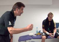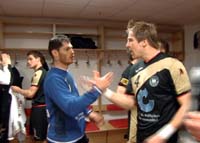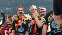 So versprüht das Training der Mannschaft auch eher rustikalen Turnhallen-Charme, Druck und Motivation werden von Innen her langsam aufgebaut und nicht von Außen aufgedrückt. In keiner Szene werden die unterschiedlichen Welten, in denen Fuß- und Handballer leben, dabei so schön deutlich wie in dem mühsamen Versuch der Mannschaft, die in einem Zug reservierten Plätze gegenüber den sonstigen Mitreisenden durchzusetzen. Man stelle sich nur mal Klinsis Kicker vor, wie sie im Intercity mit Familien über den Sitzplatz diskutieren. Da sie nicht jedermann geläufig sind, blendet der Regisseur freundlicherweise auch die Namen und Funktionen der jeweils sprechenden Personen ein, während Wortmann so intensiv mit seinen "Darstellern" verwachsen war, dass er das nicht mal beim Masseur für nötig hielt.