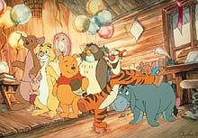 Wer befürchtet, dass Disney den Klassiker verkitscht und zu grell inszeniert hat, der darf sich beruhigt im Kinosessel zurücklehnen. Behutsam haben die japanischen und amerikanischen Zeichner den Klassiker-Figuren Leben eingehaucht, liebevoll wurden die einzelnen Charaktere kindgerecht dargestellt und mit den passenden deutschen Synchronstimmen versorgt. Tigger lispelt und schwadroniert beispielsweise in unglaublichem Tempo und Känguruh Roo ist schlichtweg bezaubernd. Und dann ist da noch die Musik: Die netten Liedchen werden in diesem Sommer auf Hörspielkassetten in der Endloswiedergabe wohl so manche Urlaubsfamilie im Auto um den Verstand bringen.