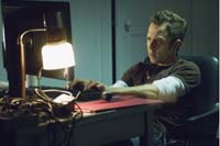 Woran es hier am meisten mangelt, ist signifikante Handlung, und dieser Mangel illustriert sich am deutlichsten am Mitwirken von Bruce Willis. Bis der überhaupt in persona auf der Leinwand erscheint, vergeht erstmal eine halbe Stunde, und in den folgenden 50 Minuten gibt's dann auch nicht mehr zu sehen als Berrys langsame Annäherungsversuche on- und offline, bei denen man als Zuschauer wohl Angst haben soll, weil sie sich ja mit einem potentiellen Killer einlässt. Das funktioniert aber leider gar nicht, da Willis hier so blass und steif wie selten zuvor wirkt und auch trotz frischer Botox-Behandlung nicht verhehlen kann, dass er eigentlich gut zehn Jahre zu alt für diese Rolle ist. Was ein unwiderstehlicher, überaus cleverer Aufreißer sein soll, wirkt mit Willis eher wie ein dauergeiler Stelzbock, der alles anbaggert, was nicht bei drei auf den Bäumen ist, und sich mit seiner Unkontrolliertheit nur permanent in Schwierigkeiten bringt.