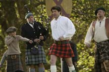 Eigentlich kann man nicht viel mehr aufschlussreiches über "Verliebt in die Braut" sagen, außer dass der Film vor Klischees und Vorhersehbarkeiten nur so strotzt. Besonders bitter und ärgerlich wird so die zweite Hälfte des Streifens, wenn sich die Handlung aus dem sonnigen New York in die schottischen Highlands verlagert. Die Drehbuchautoren scheinen sich wirklich sehr große Mühe gemacht zu haben, die dümmsten Schottenwitze nach Klischees zu durchforsten. So verkaufen sie uns den schottischen Akzent als im Grunde völlig unverständlich und vulgär. Dann gibt es natürlich noch die Tradition des Baumstammwerfens, welche auch aufs Korn genommen wird. Dies alles wäre vielleicht völlig egal und belanglos, wenn der Humor und Witz funktionieren oder wenigstens amüsieren würde. Dies ist aber nie der Fall. All das hat man so oder ähnlich in zahlreichen Variationen ungefähr 1000 mal gesehen und dabei 999 mal besser.