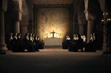 Statt dessen viele innere Streitereien und Eifersüchteleien im Kloster, bei denen es vor allem um die Emanzipation der Schwesternschaft von denen sich als "Bestimmer" aufführenden Mönchen geht, mit denen Frau sich zunächst das Kloster teilt. Denn diese verführen und schwängern gerne mal ungestraft eine der theoretisch enthaltsamen Damen, was den wachsenden Zorn der Hildegard auf sich zieht. Bis auf den gutmütigen Volmar, mit dem Heino Ferch hier einmal gegen sein übliches Raubein-Image anspielt, wird die männliche Population dann auch recht einhellig negativ dargestellt. Das dürfte auch nicht überraschen, in einem Werk der Expertin für starke Frauenfiguren der Güteklasse "Rosa Luxemburg", oder den Bewohnerinnen der "Rosenstraße". Genau dass war es offensichtlich was von Trotta an dieser Figur gereizt hat, nämlich deren Kampf um Selbstbestimmung gegen einen Wall vorwiegend männlichen Widerstands, sowohl im Bezug auf die Verbreitung ihrer "Visionen" als auch die Gründung eines eigenen Frauenklosters.