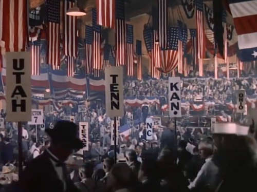Schön zeigen kann man diese inhaltliche Leere an eben genau jenen Szenen im Convention Center. Gefühlt minutenlang sieht man hier die Delegationen durch die Halle ziehen, was trotz optischem Spektakel auf Dauer einfach ermüdend ist. Wenn dann die Politiker die Bühne betreten, besteht das eigentlich nur aus deren kurzer Vorstellung und wenigen belanglosen Sätzen. Gefühlt ist das hier reines Namedropping – mit dem Problem, dass dies vielleicht für das damalige Publikum zumindest einen Wiedererkennungsmoment bedeutete, heute aber angesichts von Unwissen über diese Zeit nur ein Schulterzucken auslöst. Tatsächliche Handlung sucht man hier vergebens, stattdessen setzt der Film lediglich auf oberflächliche Nostalgie und die Wucht des Spektakels. Ähnlich verhält es sich, wenn unser Präsident in seiner Freizeit eine Vaudeville-Vorstellung besucht. Aus heutiger Sicht wirkt diese ganze Sequenz banal und zäh. Das damalige Publikum dürfte aber wohl registriert haben, dass hier der damals bekannte Eddie Foy Jr. seinen noch legendäreren Vater Eddie Foy Sr. spielt (was er übrigens schon wenige Jahre zuvor im ebenfalls Oscar-nominierten "Yankee Doodle Dandy" getan hatte).