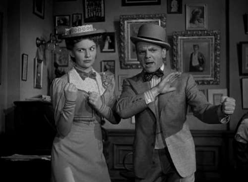 Oft hat man bei Biopics ja das Problem, dass zu wenig Zeit für zu viel Handlung bleibt. Im Fall von "Yankee Doodle Dandy" ist es gefühlt genau umgekehrt. Auch wenn hier ja eigentlich, zumindest zeitlich, ein komplettes Leben an einem vorüberzieht. An Tiefgang ist man hier aber weniger interessiert, legt stattdessen den Fokus des Films fast ausschließlich auf den künstlerischen Output von Cohan und interessiert sich weniger für das "Warum" oder "Wie". Das ist besonders in der ersten Hälfte auffällig, wenn wir mit George und seiner Familie die Vaudeville-Bühnen Amerikas abklappern. Hier passiert, mal abgesehen von etwas lockerer Kommunikation innerhalb der Familie, herzlich wenig. Dafür gibt’s umso mehr Songs aus dem Bühnenprogramm der Cohans zu sehen, die ironischerweise in sich mehr Wendungen aufweisen als die eigentliche Haupthandlung des Films. Deren familienfreundliche Form des Varietés kommt zwar irgendwie ganz niedlich daher, richtig packend oder mitreißend ist sie aber nur bedingt. Was auch daran liegt, dass die Auftritte der Familie konsequent aus Zuschauersicht und meist nur aus ein paar statischen Kameraperspektiven gezeigt werden.