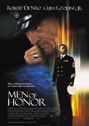 "Men of Honor" ist ein typischer Film über einen Menschen, der gegen alle Widerstände seinen Traum verwirklichen möchte. Davon gibt es viele, aber kaum einer machte sich so übertrieben über seine Geschichte her wie dieser. Kaum hat Carl ein Hindernis überwunden, steht er schon wieder vor dem nächsten, und das ist mindestens doppelt so hoch. Und das immer so weiter, von Schicksalsschlag zu Schicksalsschlag. Man kann all das entschuldigen mit der Tatsache, daß der Film ja schließlich auf wahren Ereignissen beruht. Aber man kann so etwas auf die eine und auf die andere Sache inszenieren, und Regisseur Tillman macht bereits in den ersten Szenen klar, daß es hier nicht um Realitätsnähe geht. Hier wird in Großaufnahme und mit feuchten Augen gelitten, die Gesichter sind von Schmerz verzerrt und allen geht es ganz doll schlecht. Und wem das noch nicht genug ist, dem drischt der vollkommen überzogene Musik-Score den Pathos eben auch noch in die Ohren. Nun fang endlich an zu heulen! Es ist die typische amerikanische Heldenverehrung, die hier zum Zuge kommt. Dementsprechend bleibt Carl Brashear als Charakter auch dünn wie ein Blatt Papier. Er ist über alle Maßen willensstark. Weitere Eigenschaften: keine. Ähnlich ergeht es allen anderen Figuren, die vom netten weißen Kumpel bis hin zum ewig feindlich gesinnten Militär-Fuzzi in ihre funktionale Schablone gepresst werden und sich daraus nicht eine Sekunde lösen können. Einzig Robert de Niro und Charlize Theron, die das Ehepaar Sunday spielen, erwecken den Eindruck, als könnte da noch etwas mehr in ihrem Inneren lauern. Vielleicht entpuppt sich die wahre Qualität eines Schauspielers dann, wenn selbst einer völlig flachen Figur noch etwas Tiefe verliehen werden kann.