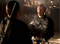 Erst, als der Held fertig eingerichtet und ausgestattet ist, konzentriert sich "Batman Begins" auf seinen ersten großen Kampf gegen das organisierte Verbrechen, der bis hier her in geschickten Subplots etabliert worden war: Im Zentrum stehen der Mafiaboss Carmine Falcone (Tom Wilkinson, "In the Bedroom"), der korrupte Psychiater Dr. Jonathan Crane (Cillian Murphy, "28 Days later") - und ein paar alte Bekannte, die mit dem Korruptions- und Verbrechenssumpf in Gotham City mit sehr rabiaten Mitteln aufräumen wollen. Außerdem mit von der Partie: Der alte Haudegen Rutger Hauer als Richard Earle, der in Bruces Abwesenheit die Geschicke von Wayne Enterprises lenkte und sich hübsch an der Firma bereichern will; Gary Oldman als Batmans einziger Verbündeter bei der korrupten Gothamer Polizei, der aufrichtige Leutnant Jim Gordon; und Katie Holmes als Bruces Jugendfreundin und nun Assistenz-Staatsanwältin Rachel Dawes.