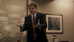 Mit "Der Informant!" legt er aber nun eine Art "Zwitter" vor, einen sehr leichten und amüsanten Film, der dann aber doch wieder viel zu schräg und merkwürdig geraten ist, um die Erwartungen des auf eine konventionelle Agentenkomödie eingestellten Publikums zu erfüllen. Wer also mit der letzten kleinen Groteske der Coen-Brüder namens "Burn after Reading" schon nicht viel anzufangen wusste, der wird auch mit diesem Film kaum warm werden und sich stattdessen öfter mal fragen, was denn das bitte nun alles soll. Denn mit einem ernsthaften oder gar spannenden "Enthüllungsthriller" haben wir es nur im Ansatz zu tun. Die in Grundzügen wahre Geschichte des Mark Whitacre wird bei Soderbergh zur Farce über einen Mann, der doch eigentlich alles hat und dann damit beginnt, aus nicht nachvollziehbaren Gründen Stück für Stück sein Leben zu zerstören.